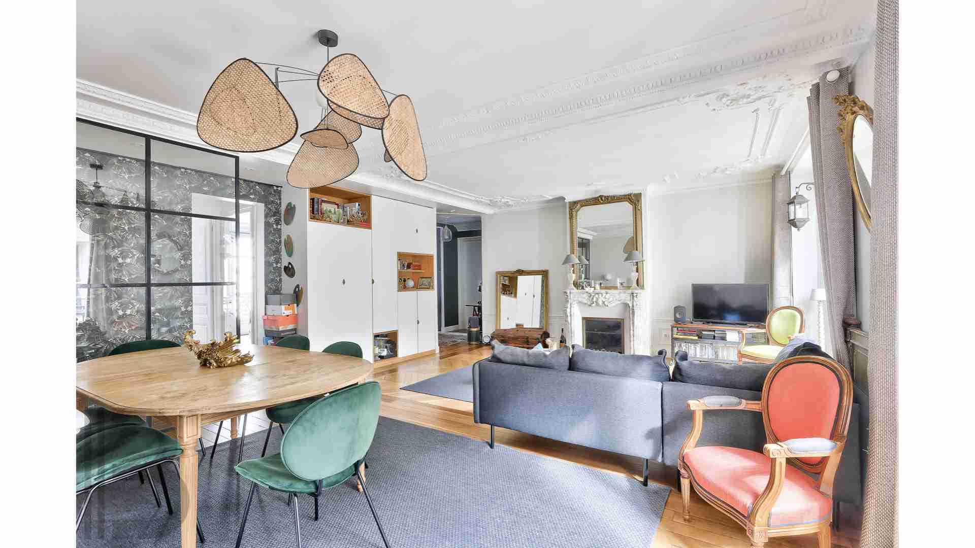 Pompe / Passy – Au 3e étage par ascenseur d’un bel immeuble du début du XXe sécurisé et bien tenu, avec gardienne à demeure, très bel appartement familial de 99m2 au sol avec rénovation de grande qualité par un architecte, qui a préservé tout le charme de l’ancien : parquet, moulures en rosace et cheminées Pompadour. Une agréable entrée dessert, en étoile – côté rue : un double séjour de 35m2 orienté Sud-Est et une première chambre avec sa salle d’eau en suite – côté cour dégagée : une cuisine dînatoire toute équipée, 3 autres chambres au calme absolu avec peu de vis-à-vis, une salle de bain et un wc séparé. Une grade cave et une chambre de service de 10m2 (louable) au 6e étage par ascenseur avec vue Tour Eiffel complètent ce bien. Sectorisé Janson de Sailly et proximité directe avec les écoles Franklin, la Tour, la Providence et Gerson.