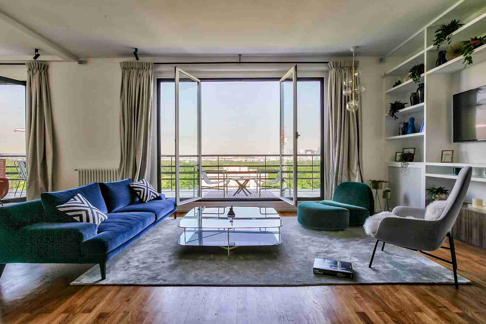Bien d’exception. Au 8ème et dernier étage d’un immeuble 1930 de très bon standing avec gardienne, digicode et interphone, appartement traversant (Lannes/Flandrin) entièrement rénové par architecte de renom d’une surface de 92m2 loi Carrez plus 35m2 de terrasse soit 110m2 pondérés. Il se compose comme suit : entrée sur un vaste double séjour/salle à manger avec cuisine dinatoire, l’ensemble d’une surface de 45m2 avec baies vitrées donnant sur une terrasse exposée Ouest, une vue magnifique sur le Bois de Boulogne et le Mont Valérien, deux chambres composées comme des suites, la chambre parentale donne sur la terrasse, elle possède un grand dressing attenant ainsi qu’une salle de bain en marbre et un accès sur un balcon exposé Est, la chambre d’enfant est agrémentée d’une salle douche, de rangements ainsi que d’un balcon.