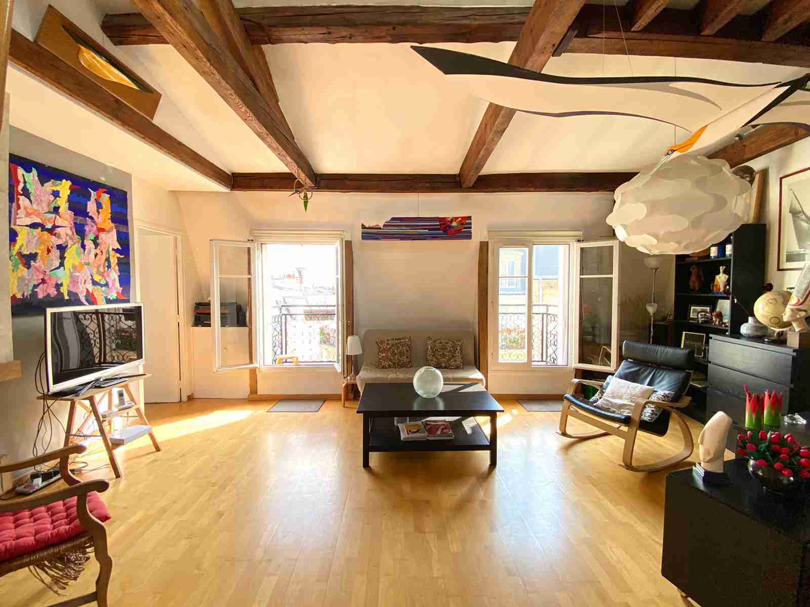 Quartier Latin – Dernier étage balcons et vues exceptionnelles – Au 6e et dernier étage par ascenseur d’un immeuble Haussmannien, Belmont Immobilier vous propose un sublime appartement 2-3 pièces de 57m2 Carrez (+11m2 de mezzanine) bordés de balcons aux vues exceptionnelles sur Notre-Dame et le Panthéon. Il se compose comme suit : une entrée desservant un séjour cathédrale (3.75m de HSP) avec cheminée fonctionnelle et donnant sur deux balcons, une chambre avec dressing et balcon, une cuisine équipée (possible de transformer facilement en chambre), une salle de bain avec wc, et une mezzanine pouvant servir de couchage d’appoint – Sectorisation Henri IV / Louis le Grand – Parking possible en sus