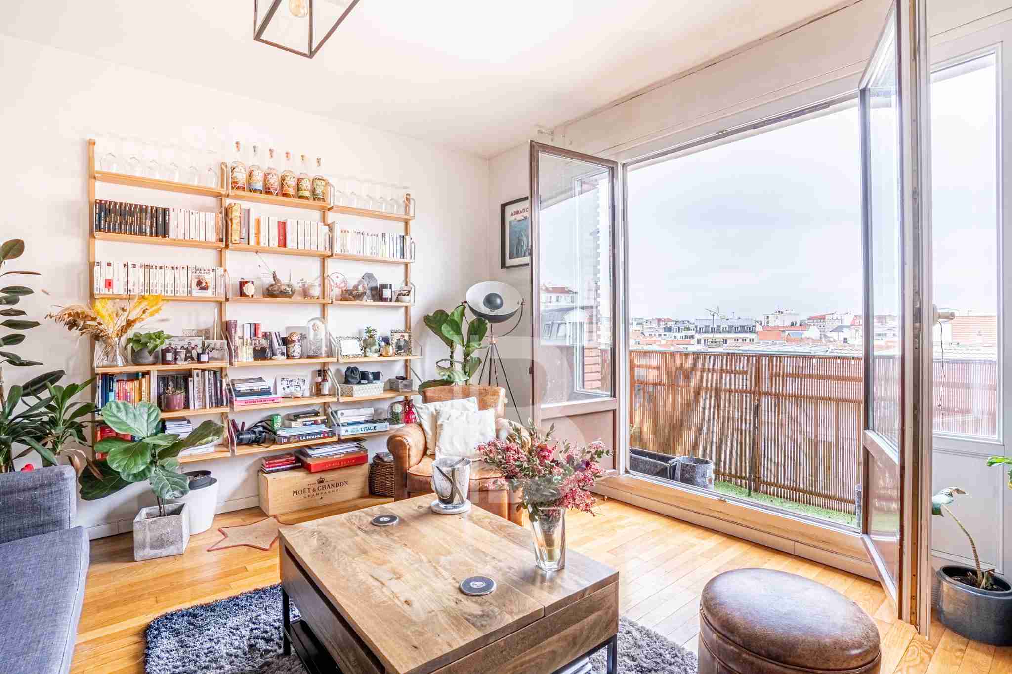 Dernier étage – Balcon – Vue dégagée – Aucun vis-à-vis – Au calme absolu en plein coeur de La Garenne-Colombes, à proximité immédiate de tous les commerces et transports, au 4e et dernier étage d’un bel immeuble 1950, superbe appartement traversant 3 pièces de 71m2 carrez composé comme suit : une entrée avec un dressing, un double séjour donnant sur un balcon filant de 8m2 par de grandes baies vitrées offrant clarté et vue dégagée, une cuisine ouverte toute équipée sur-mesure, une salle de bains avec baignoire, un wc séparé, deux chambres spacieuses au calme absolu avec vue imprenable sur toits, sur La Défense et sur la Tour Eiffel – Possibilité triple séjour ou 3e chambre – Une cave complète ce bien en parfait état, vendu avec son mobilier réalisé sur-mesure